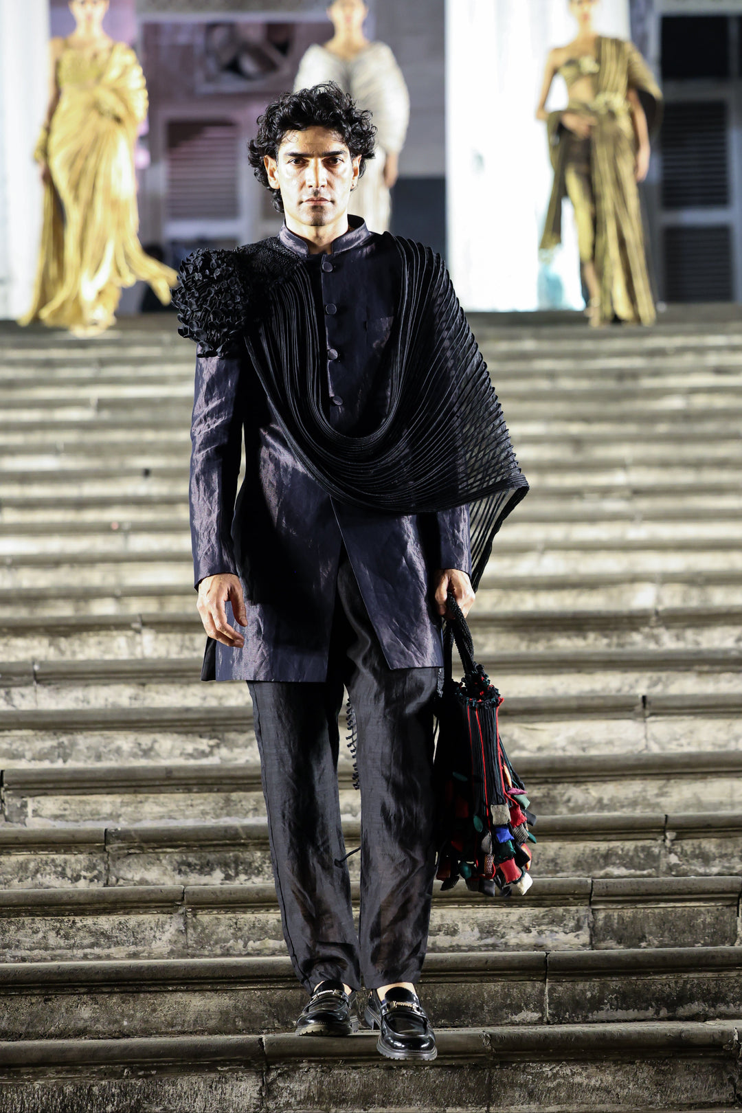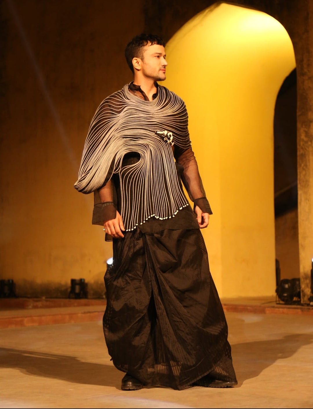 On the occasion of our 25th Anniversary, Vaishali S marks a significant milestone with the launch of Menswear presented through a 15-looks couture showcase rooted in handloom legacy. Crafted entirely from indigenous textiles, the collection explores silks, khadi, cottons and handwoven blends, shaped through meticulous surface techniques, sculptural cording, and signature textile manipulations.
