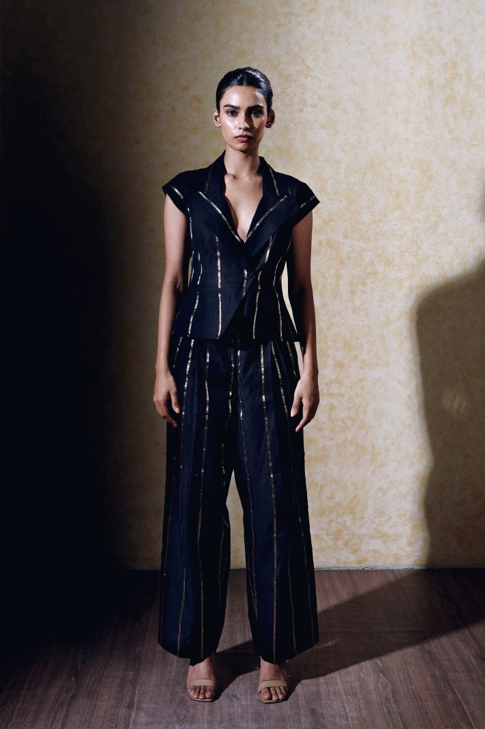 The Aristo Set is a sharp, contemporary co-ord designed for modern dressing. Tailored to perfection, the ensemble balances clean lines with a strong, structured silhouette.